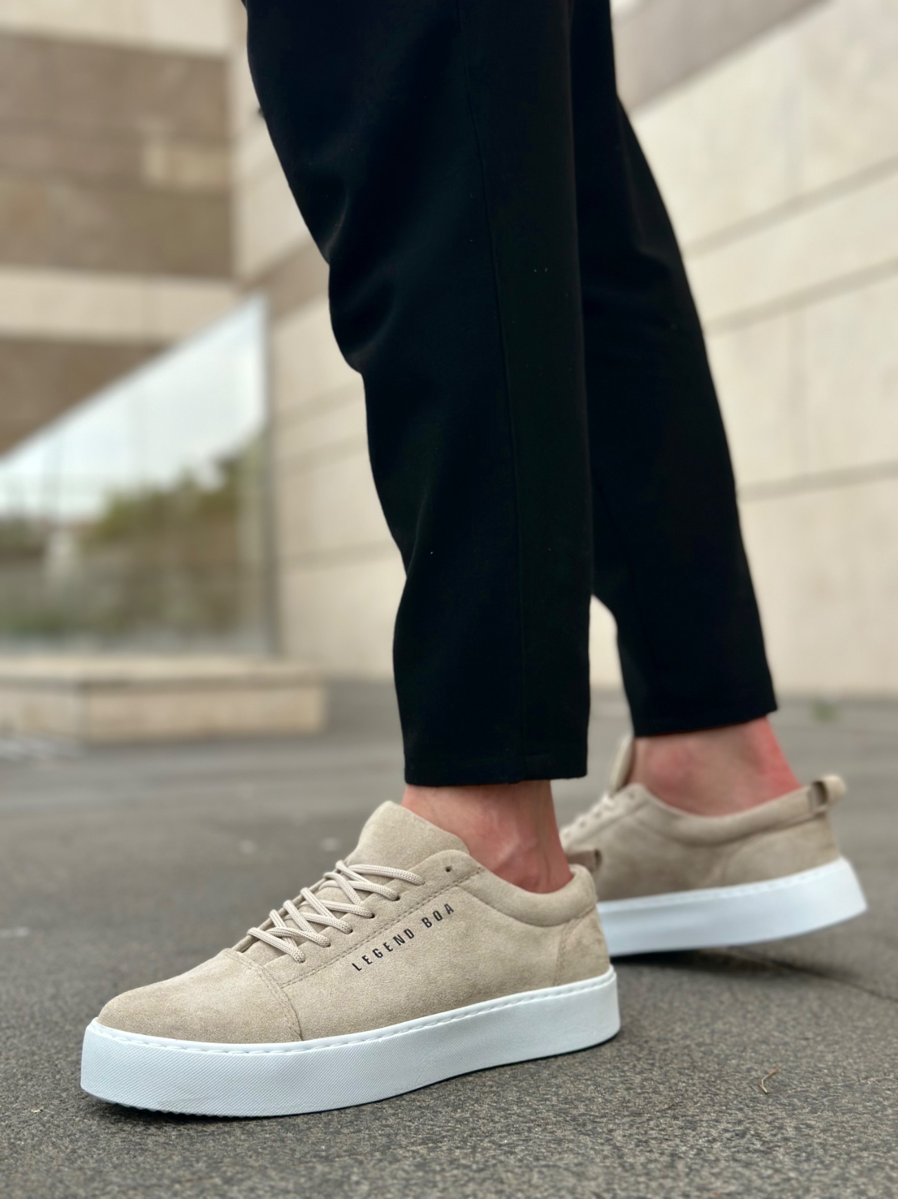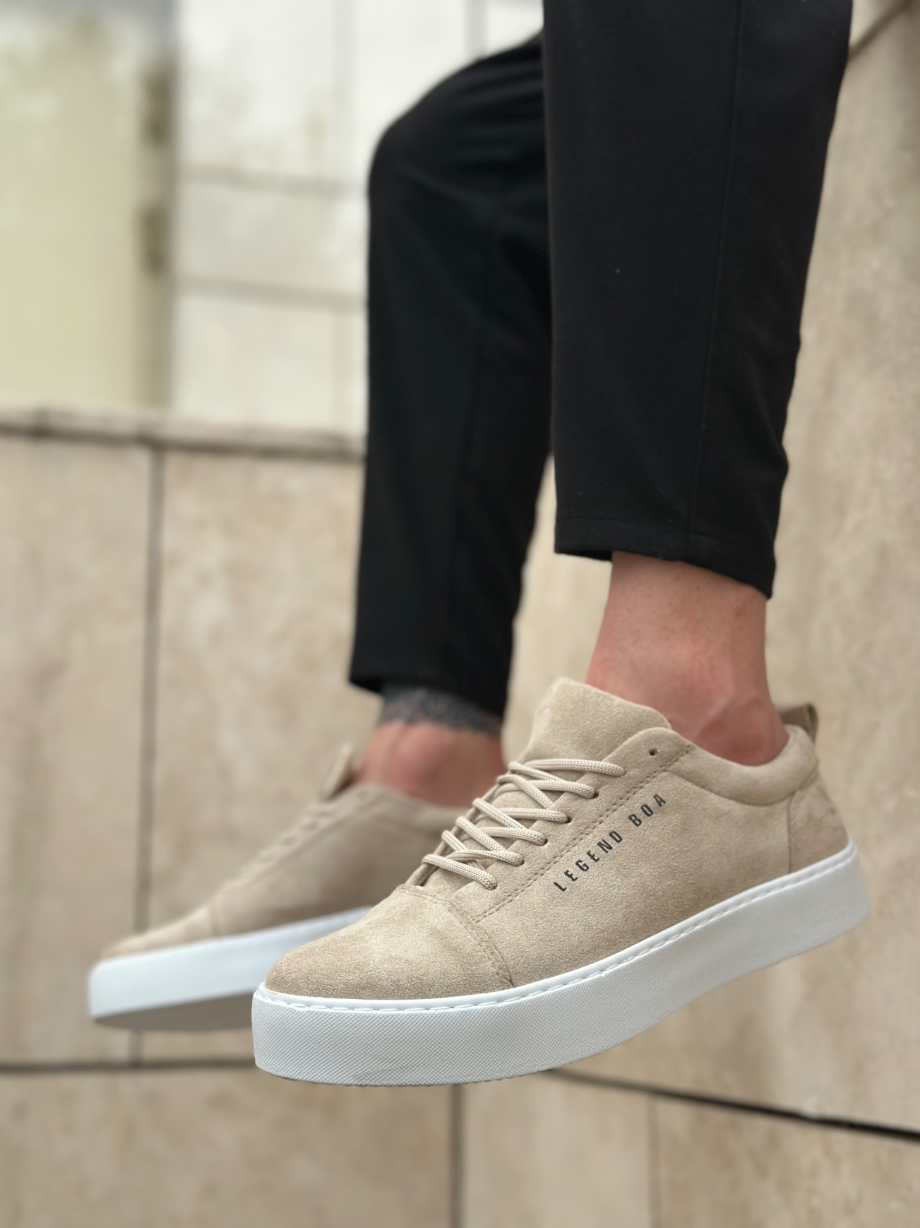 BA0104 Bağcıklı Krem Süet Beyaz Taban Spor Klasik Erkek Ayakkabı