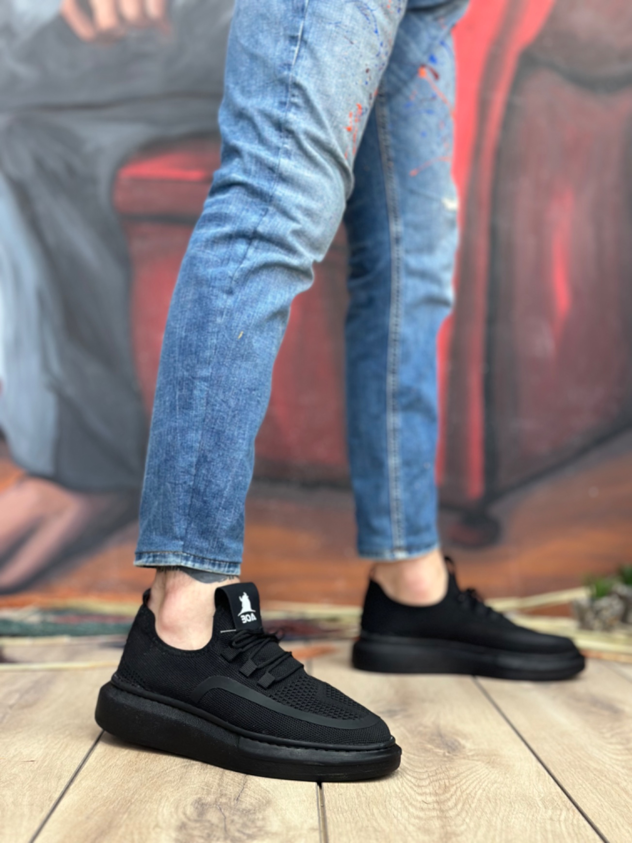 BA0375 Özel Örme Triko Tarz Siyah Renk Siyah Taban Spor Ayakkabı